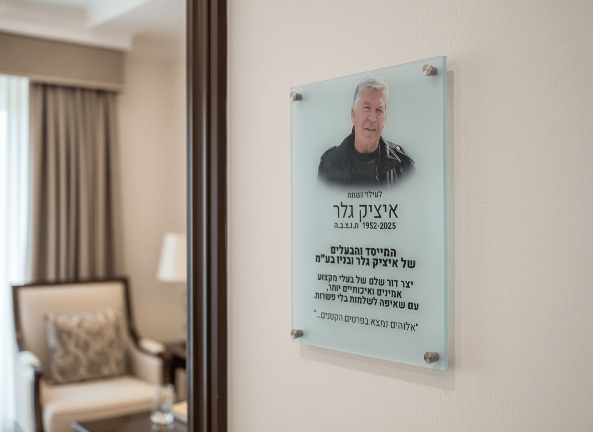 אנחנו מתמחים בהדפסה מדויקת על זכוכית, אלוקובונד, עץ, פרספקס וחומרים נוספים – בשילוב גרפיקאים מקצועיים, טכנולוגיות מתקדמות ו-AI ליצירת התאמה אישית מלאה.